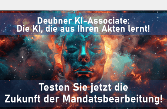 Die KI, die aus Ihren Akten lernt: Der Deubner KI-Associate revolutioniert die juristische Arbeit: er analysiert komplexe Mandate, denkt juristisch und erstellt Schriftsätze auf höchstem Niveau – effizient, sicher und individuell.