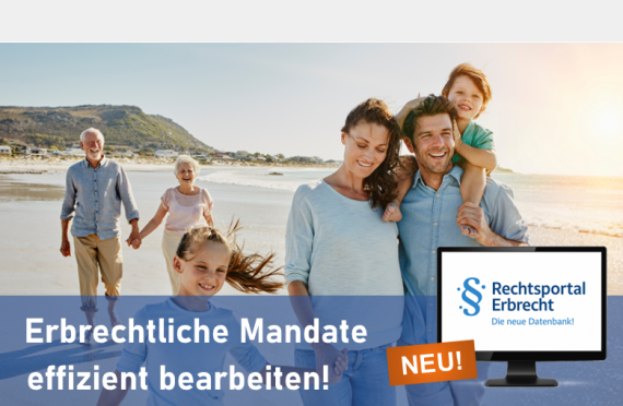 Das neue Online-Portal für Erbrechtler! Alles, was Sie für die Mandatsbearbeitung und die Mandantenpflege benötigen: Fachinformationen, Musterformulare, Tools, Rechtsprechung, News und Mandanteninformationen.